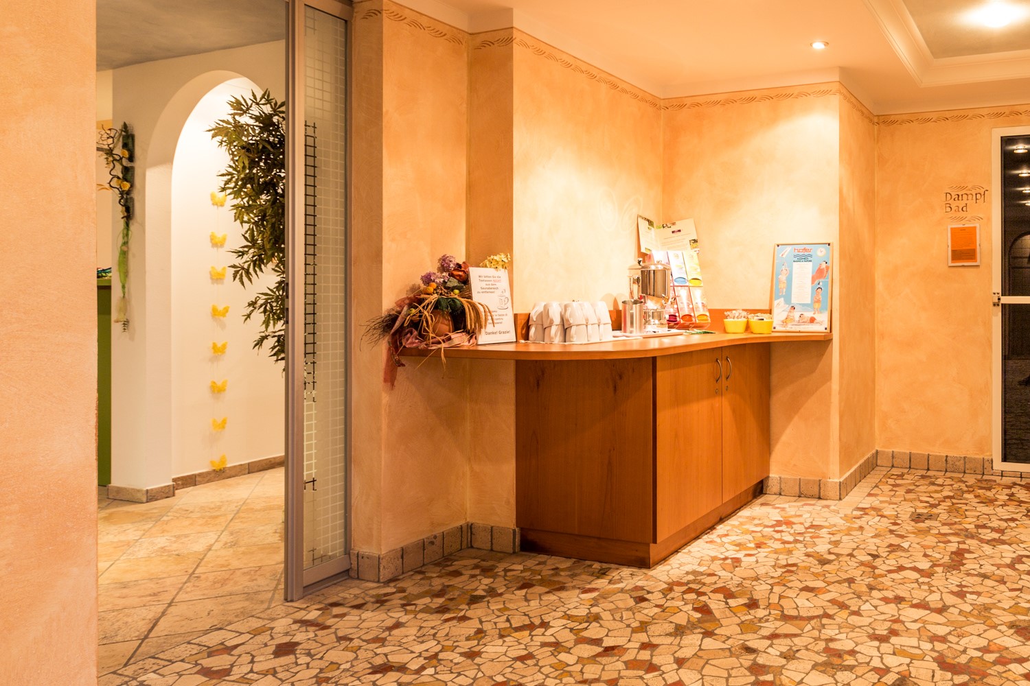 - Nach dem Badevergnügen duschen Sie sich nach Belieben, hüllen Sie sich gut ein und begeben Sie sich in den Ruheraum